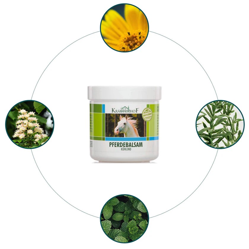Il balsamo rinfrescante per cavalli di Kräuterhof, parte dell'assortimento asambeauty, è una cura intensiva per il corpo con estratti vegetali naturali e un effetto extra forte. Questo gel rinfrescante, ricco di umidità, è progettato per il massaggio di supporto e offre un piacevole effetto rinfrescante, particolarmente benefico dopo sforzi fisici o stress muscolare. Amato dagli appassionati di sport, il balsamo per cavalli di Kräuterhof è ideale per massaggiare muscoli e articolazioni stanchi.