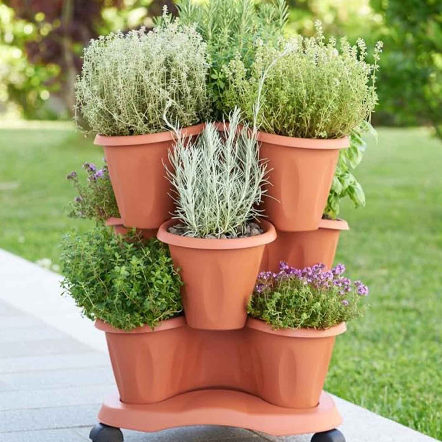 Il Bama Vaso Trifoglio Grigio è la soluzione ideale per chi cerca praticità, resistenza e un design moderno per arredare balconi, terrazzi, giardini o spazi interni. Questo set è composto da tre vasi sovrapponibili e da un pratico sottovaso con ruote, che permette di spostare facilmente le piante anche quando il vaso è pieno.