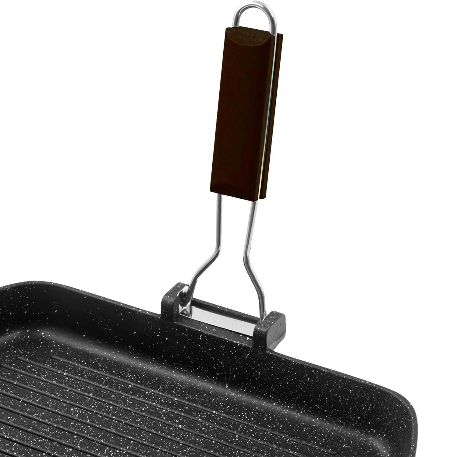 Grazie al manico pieghevole, si ripone facilmente anche in cucine con poco spazio. La superficie grill è perfetta per cuocere carne, pesce, verdure e panini, mantenendo i cibi leggeri e gustosi.