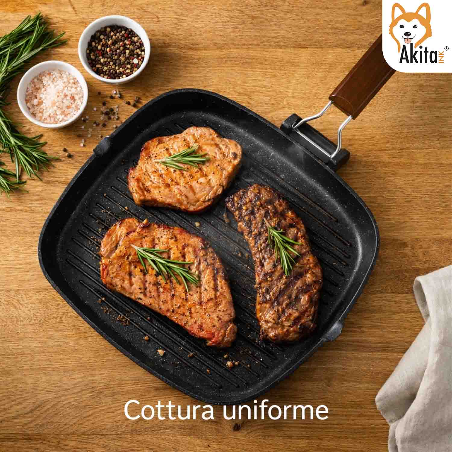 🔥 Bistecchiera 28×28 cm – Ampia superficie di cottura.