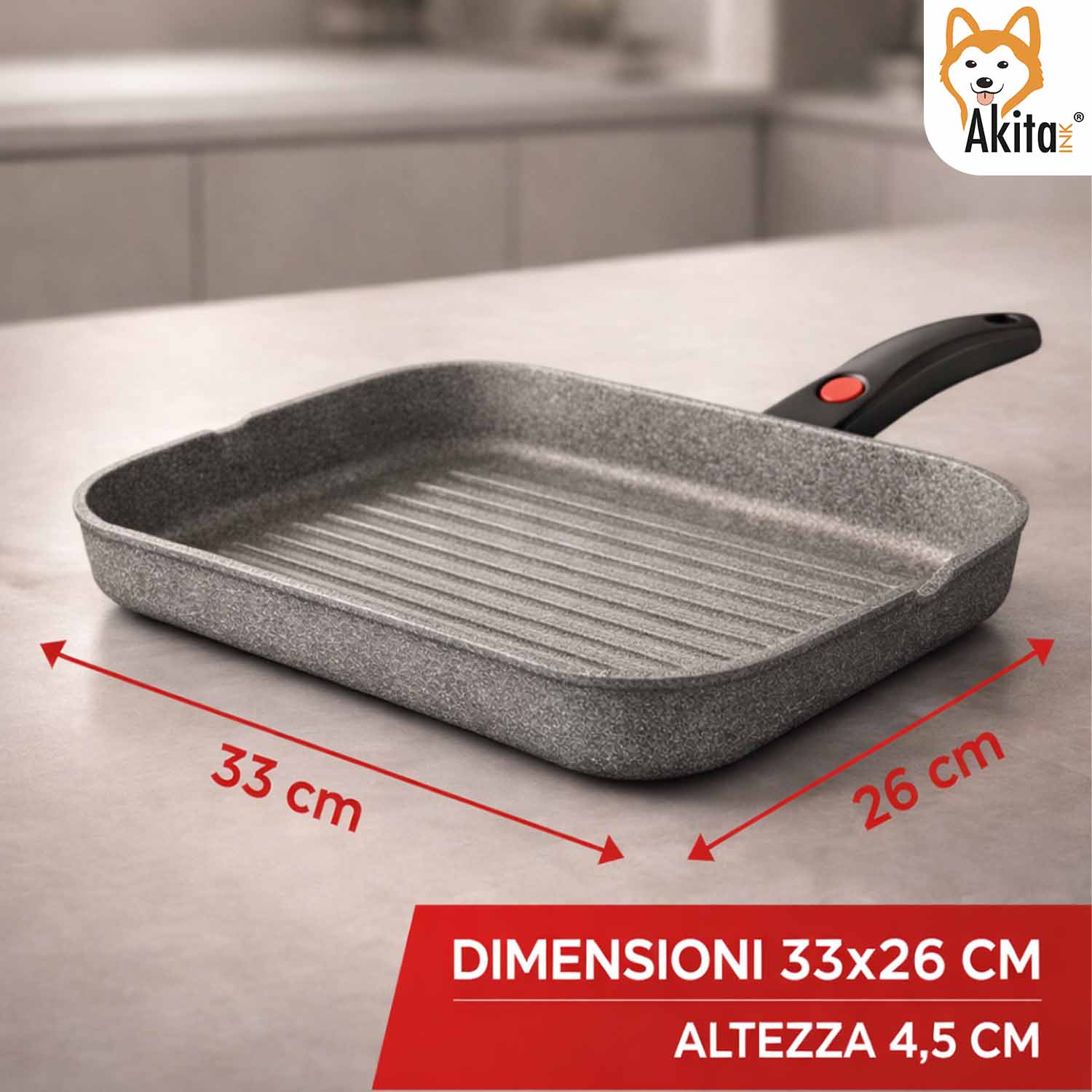 La bistecchiera 33x26 cm effetto pietra è perfetta per preparare grigliate gustose e salutari direttamente a casa. Il rivestimento antiaderente consente una cottura uniforme con meno grassi, preservando sapore e consistenza degli alimenti.