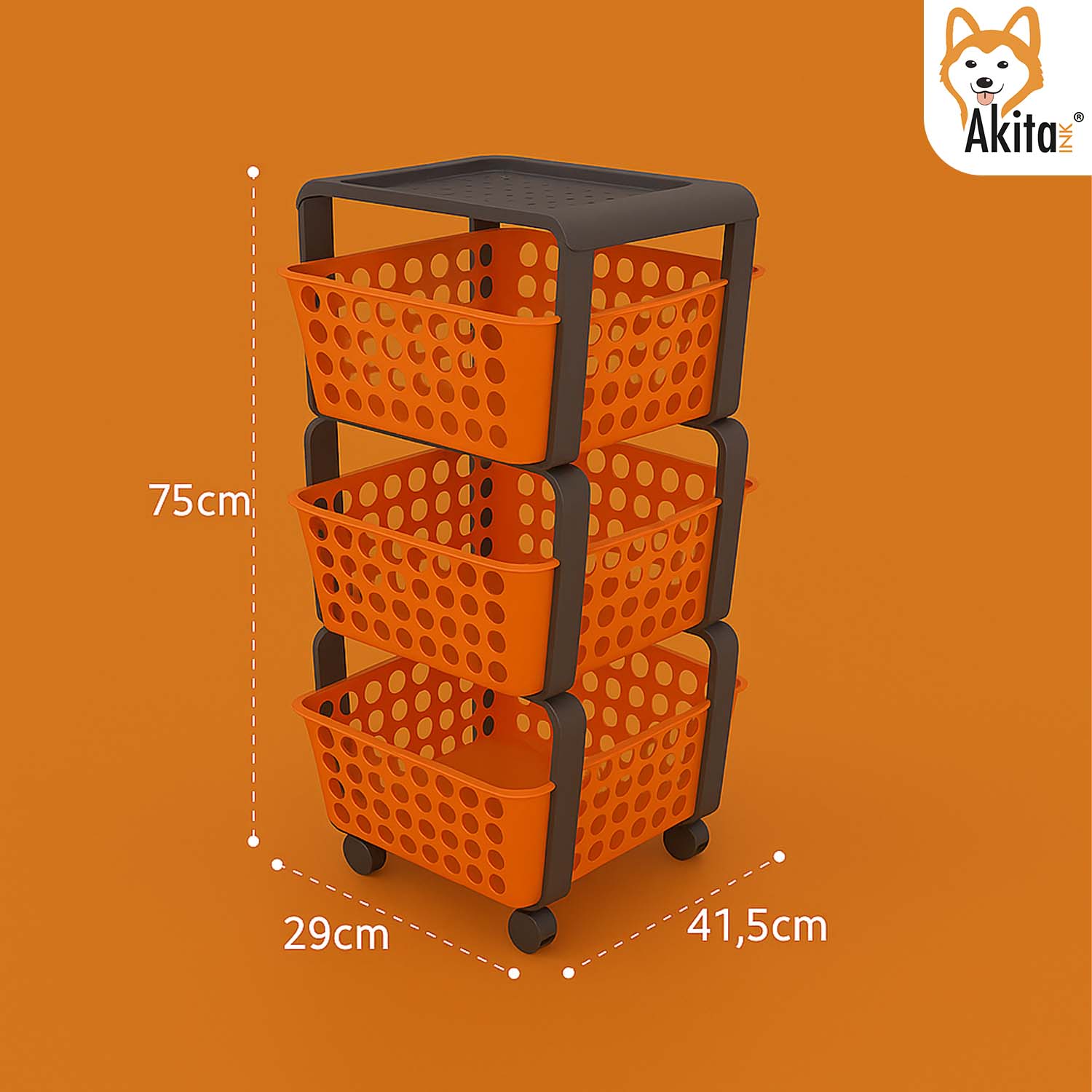 Il Carrello Portatutto Modula Akitaink è un pratico carrellino salvaspazio con struttura a 3 piani e ruote scorrevoli, perfetto per organizzare oggetti in bagno, cucina, lavanderia, camera o ufficio. Il suo design compatto (41,5 x 29 x 75 cm) consente di sfruttare anche gli spazi più piccoli senza rinunciare alla capienza.