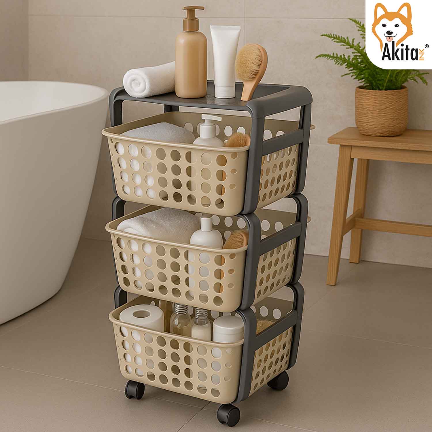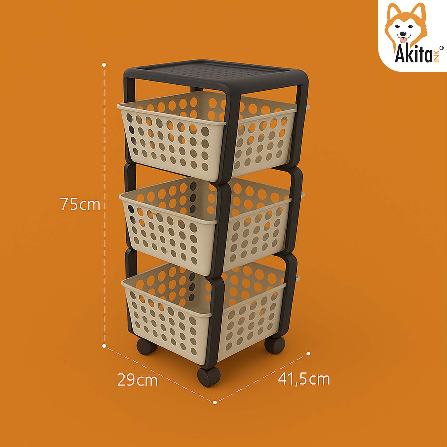 Il Carrello Portatutto Modula Akitaink è un pratico carrellino salvaspazio con struttura a 3 piani e ruote scorrevoli, perfetto per organizzare oggetti in bagno, cucina, lavanderia, camera o ufficio. Il suo design compatto (41,5 x 29 x 75 cm) consente di sfruttare anche gli spazi più piccoli senza rinunciare alla capienza.