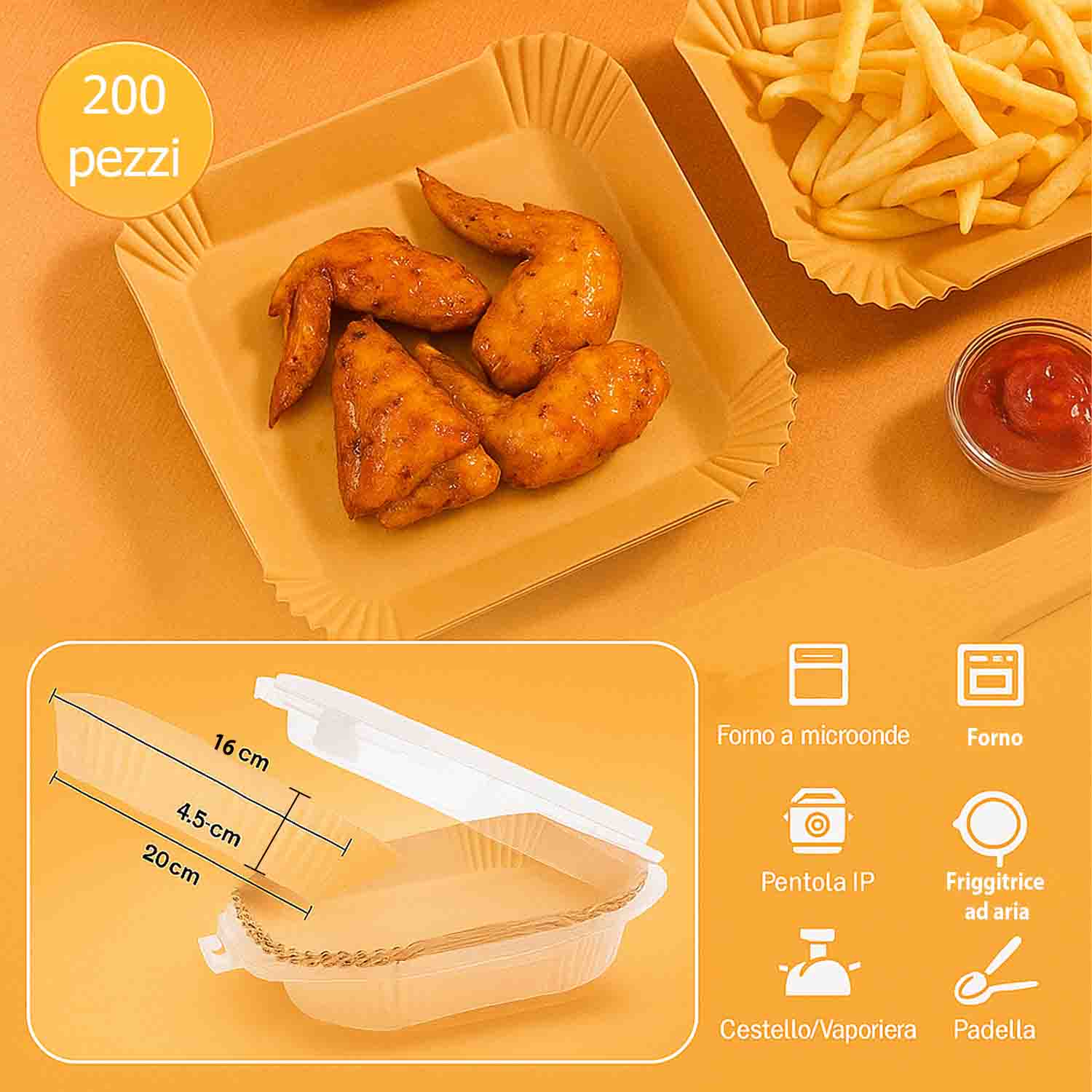 🍟 200 fogli per friggitrice ad aria – formato quadrato 16–20 cm con bordo da 4,5 cm.