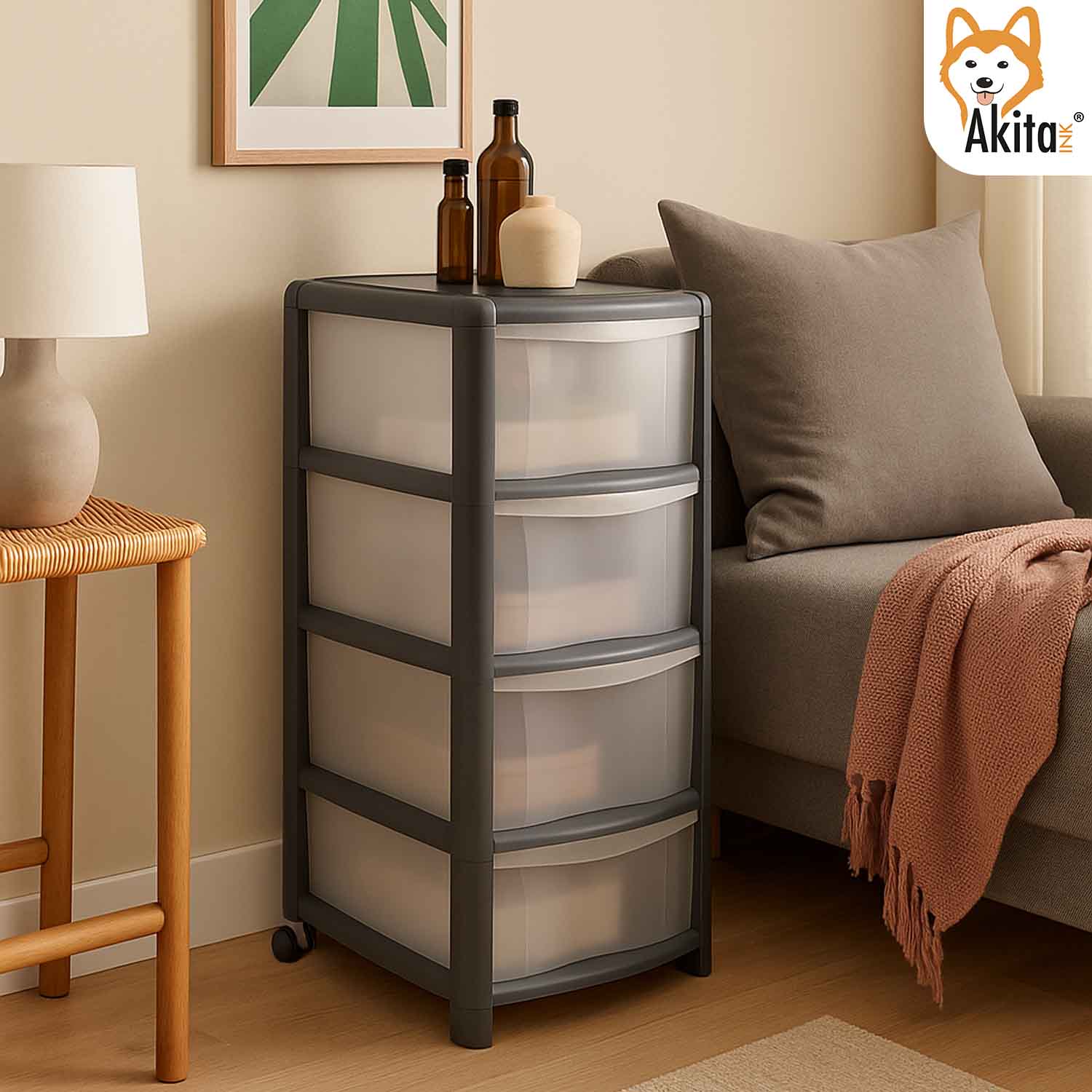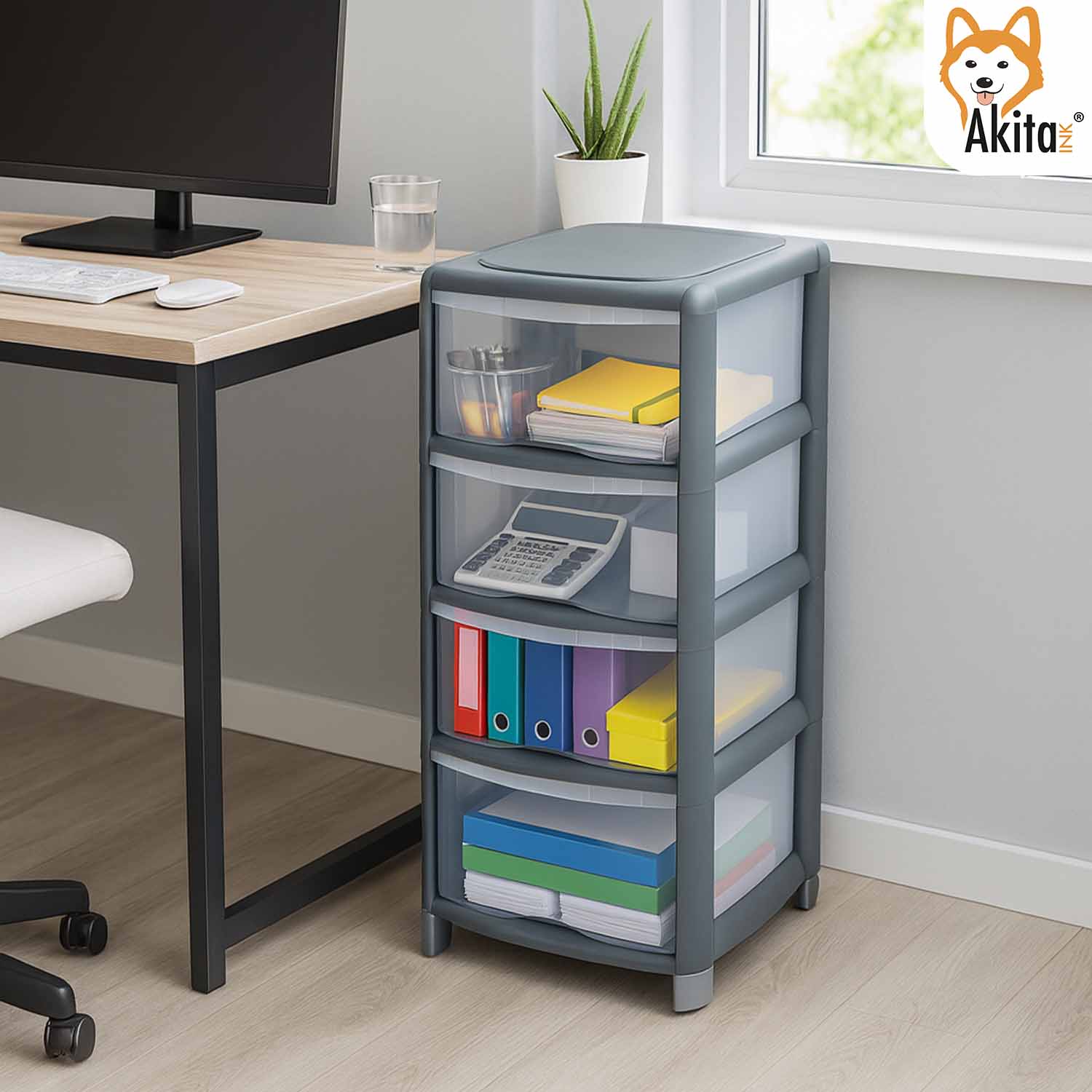 Organizza i tuoi spazi con stile e praticità grazie alla cassettiera AkitaInk a 4 cassetti trasparenti. Realizzata in plastica resistente con eleganti bordi grigi e cornice in bambù naturale, unisce funzionalità e design contemporaneo per adattarsi perfettamente a ogni ambiente della casa o dell’ufficio.