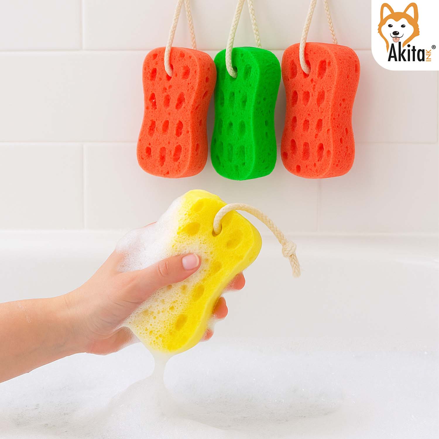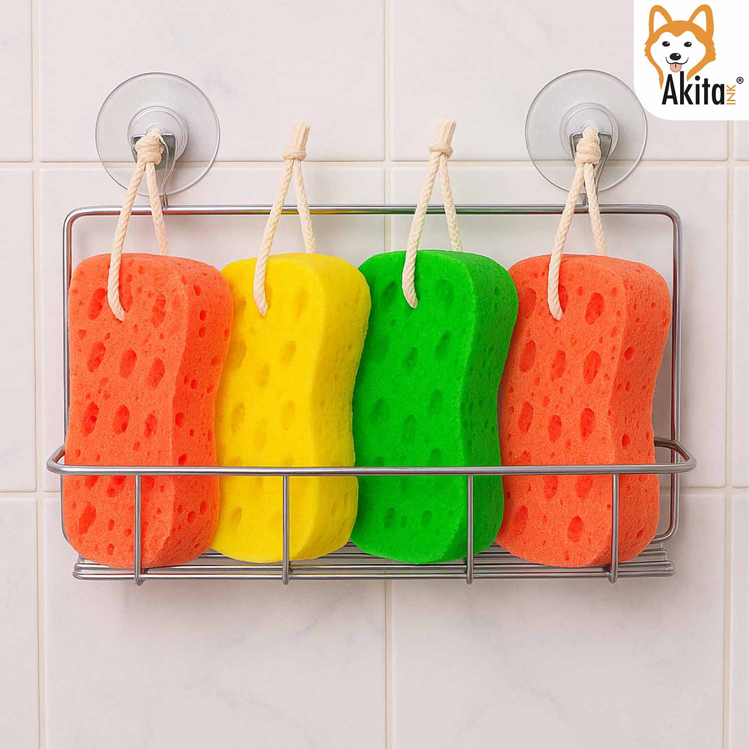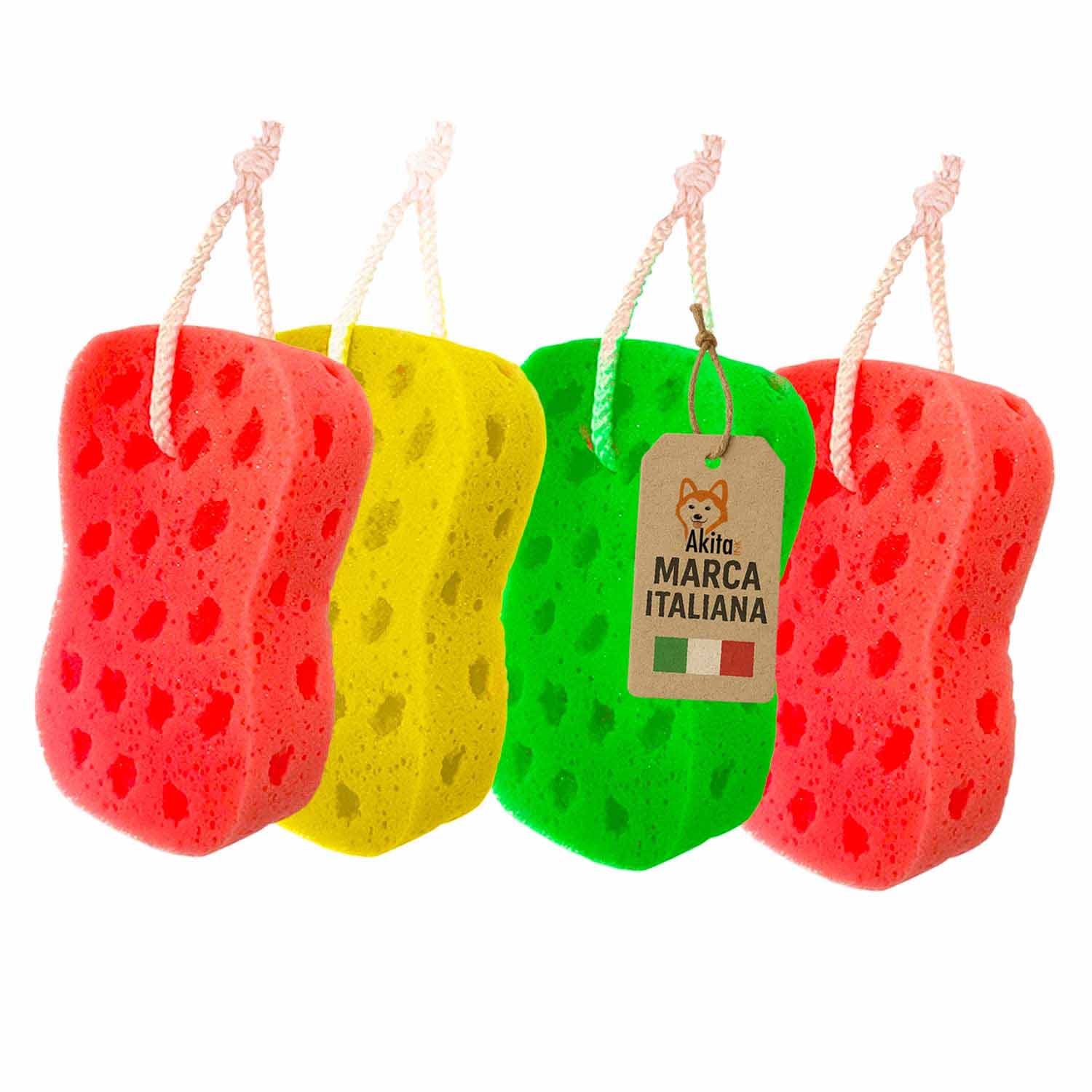 Porta colore e praticità nel tuo momento doccia con questo set di 4 spugne da bagno super assorbenti, realizzate in materiale morbido e forato per una migliore asciugatura e igiene.