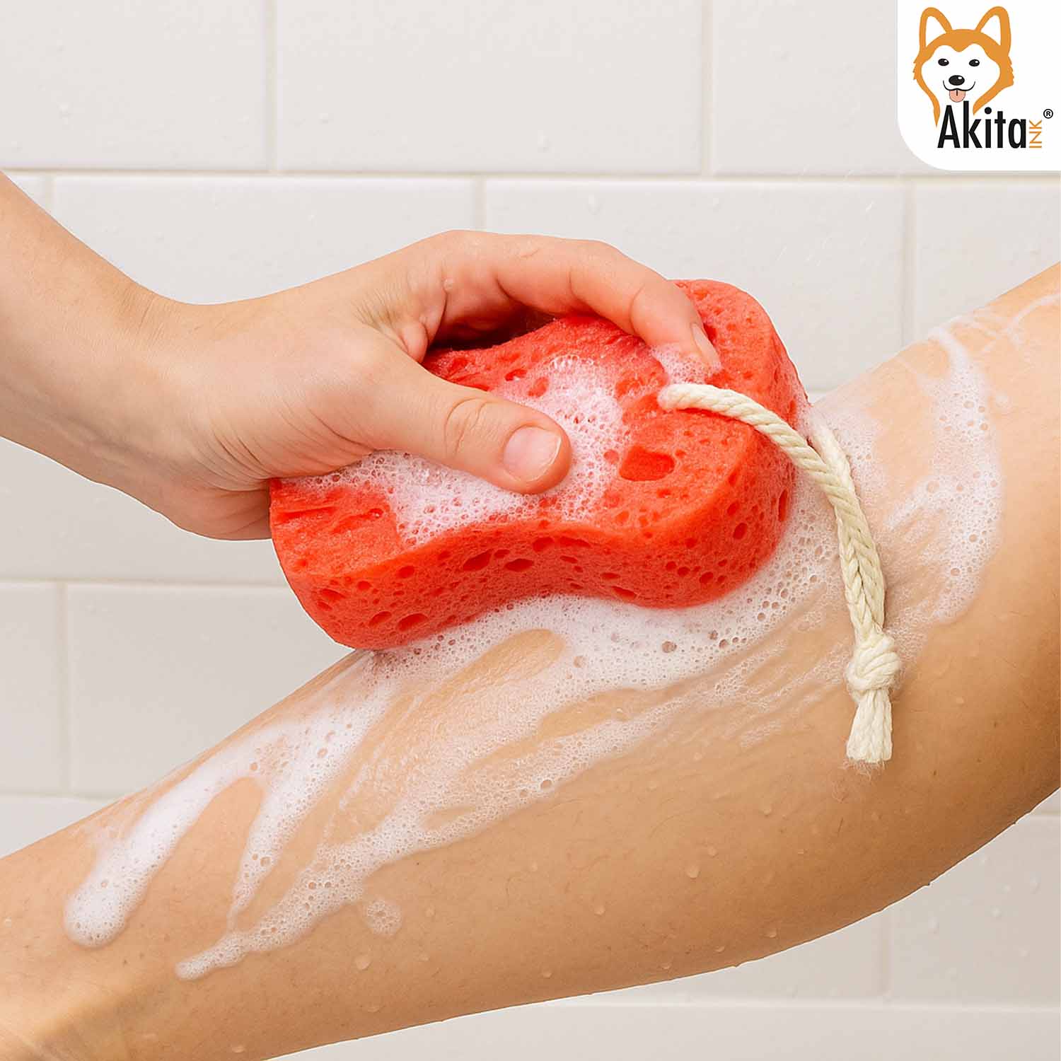 Ogni spugna è dotata di cordino, perfetta da appendere in bagno o in palestra.