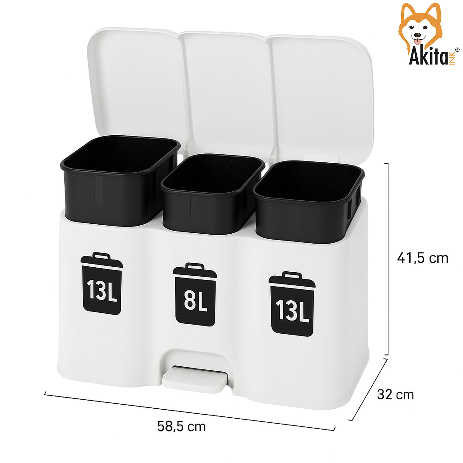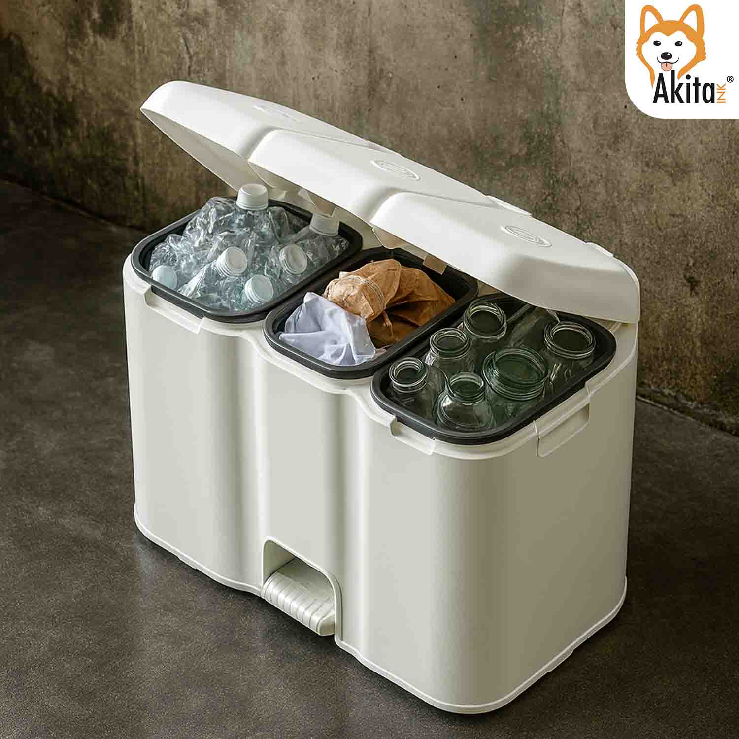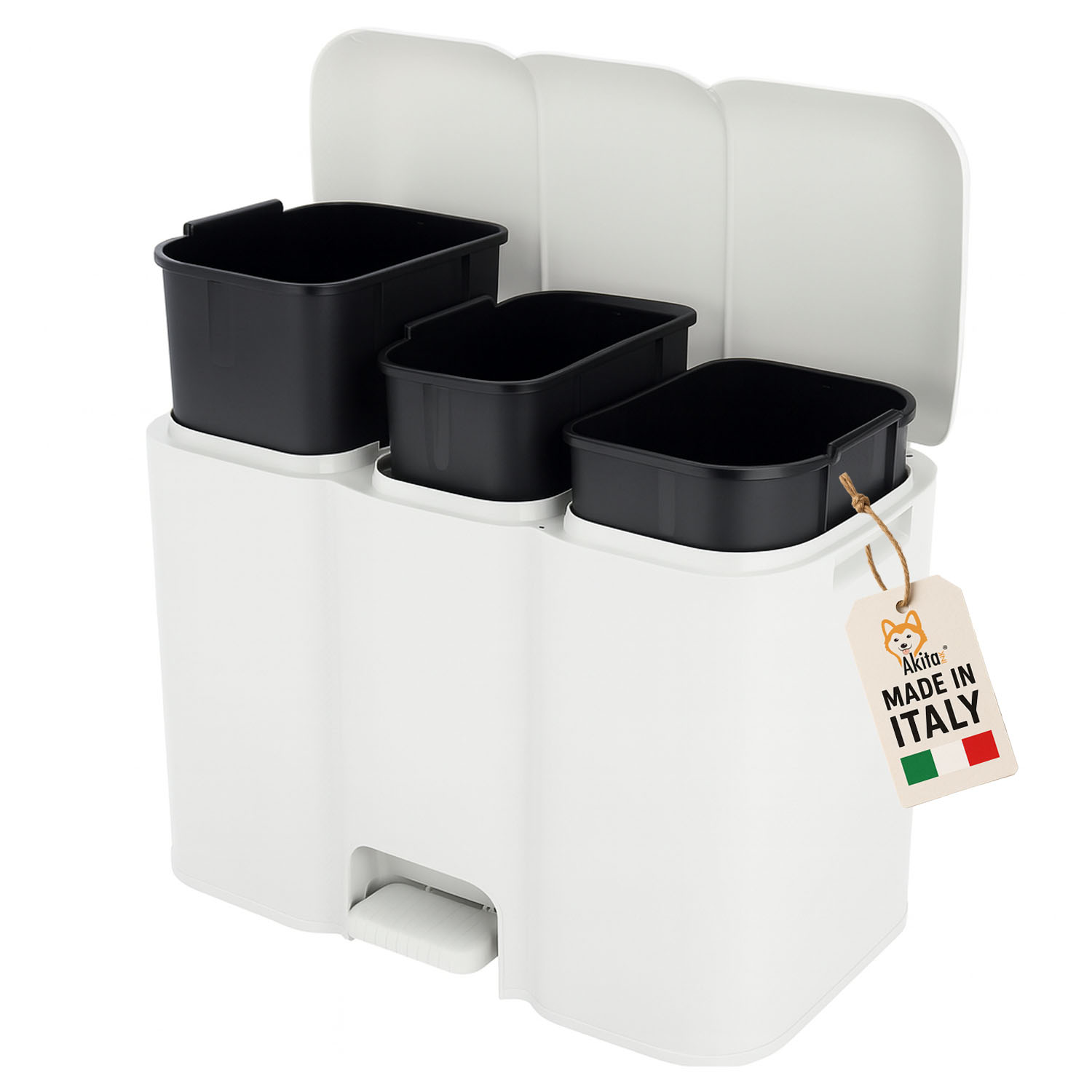 La pattumiera differenziata AkitaInk a 3 scomparti è la scelta ideale per gestire in modo pratico ed elegante la raccolta dei rifiuti domestici.
