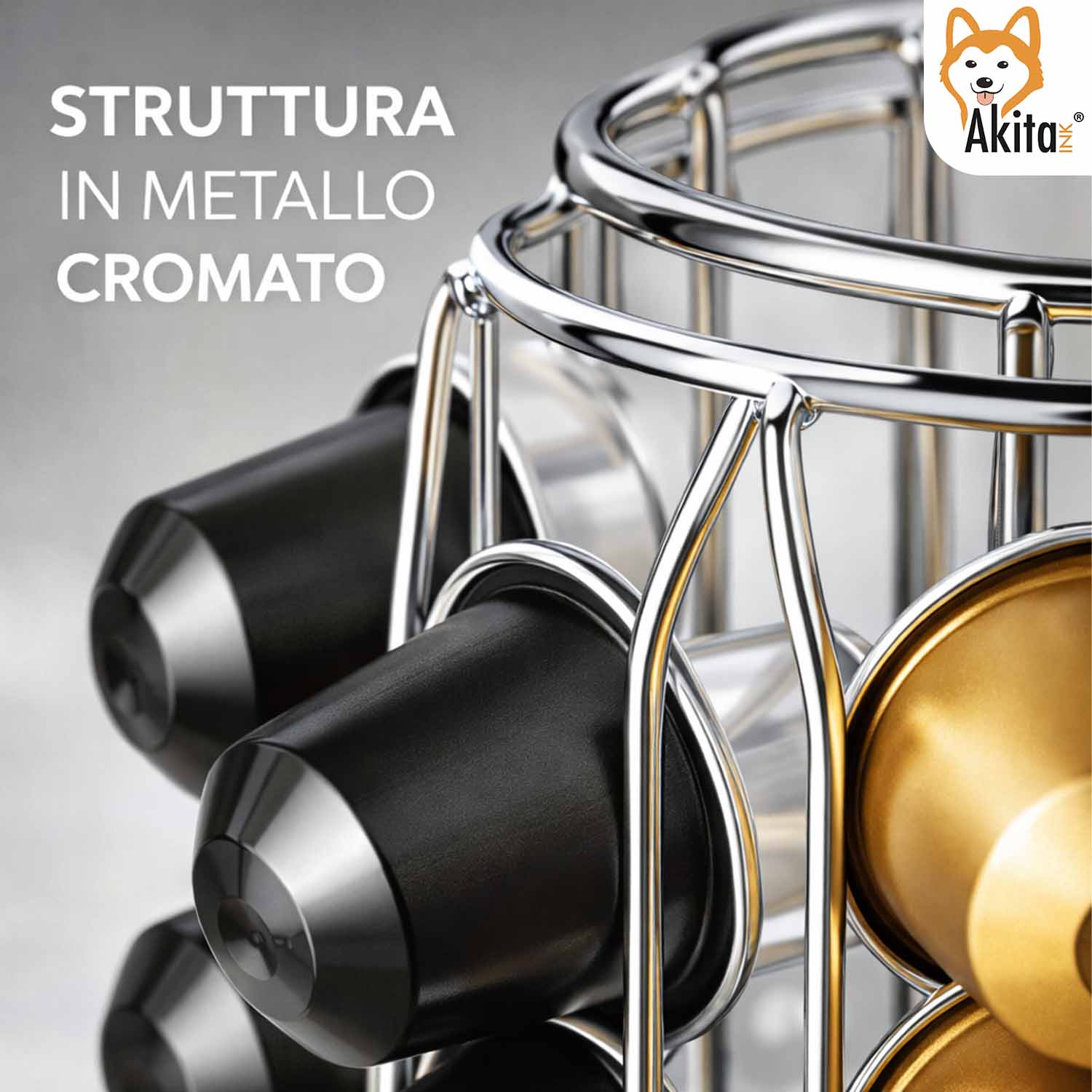 Realizzato in metallo resistente, offre stabilità e durata nel tempo, mantenendo le capsule sempre a portata di mano. Il design moderno e minimalista si integra perfettamente in cucina, ufficio o area break, aggiungendo un tocco di ordine e stile.