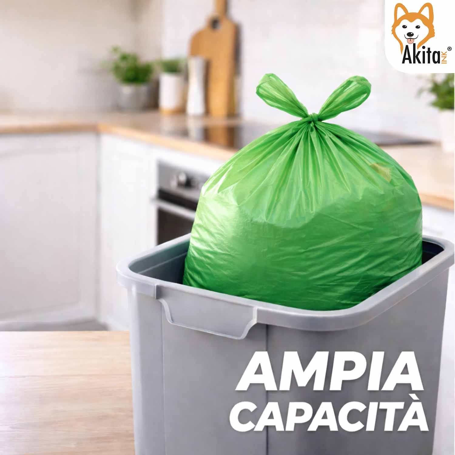 La confezione include 180 sacchetti suddivisi in 6 rotoli da 30 pezzi, pratici da conservare e utilizzare quando necessario. Il colore verde consente una facile identificazione e un aspetto ordinato.