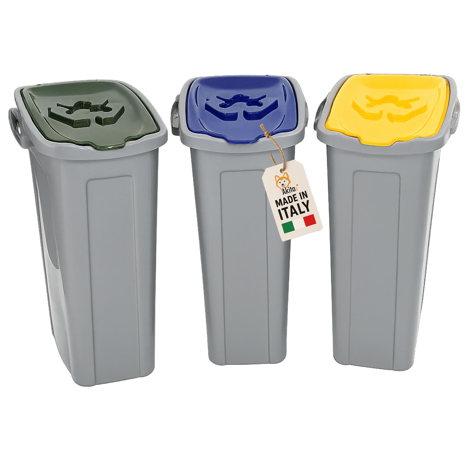 Il set pattumiera AkitaInk è la soluzione pratica e salvaspazio per la raccolta differenziata in casa o in ufficio. Composto da 3 contenitori impilabili in plastica resistente, consente di organizzare i rifiuti in modo ordinato e funzionale senza occupare troppo spazio.