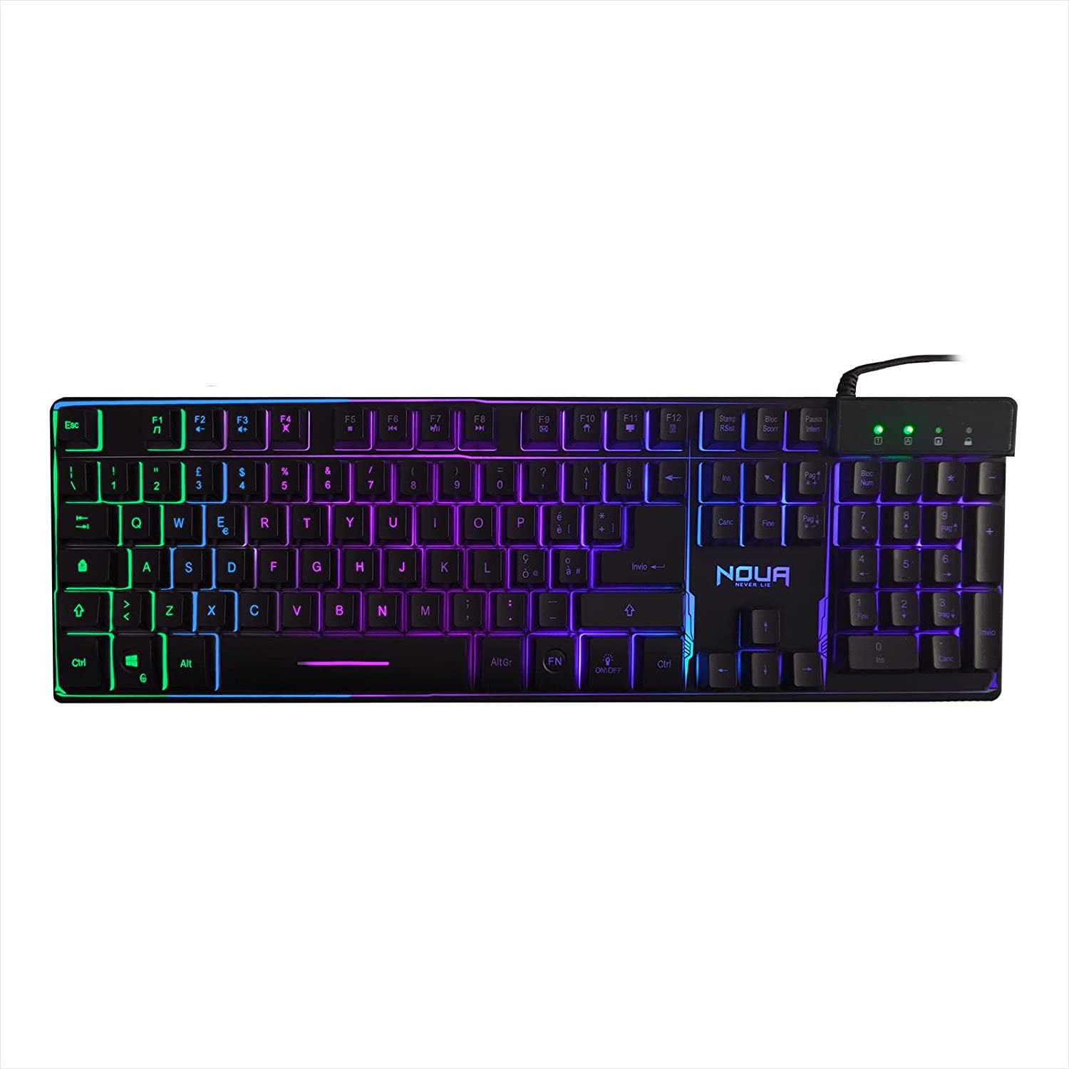 La tastiera da gioco Shield di Noua utilizza la tecnologia Anti-Ghosting per garantire precisione e accuratezza nel gioco con la possibilità di registrare fino a 19 tasti premuti contemporaneamente nel gioco.