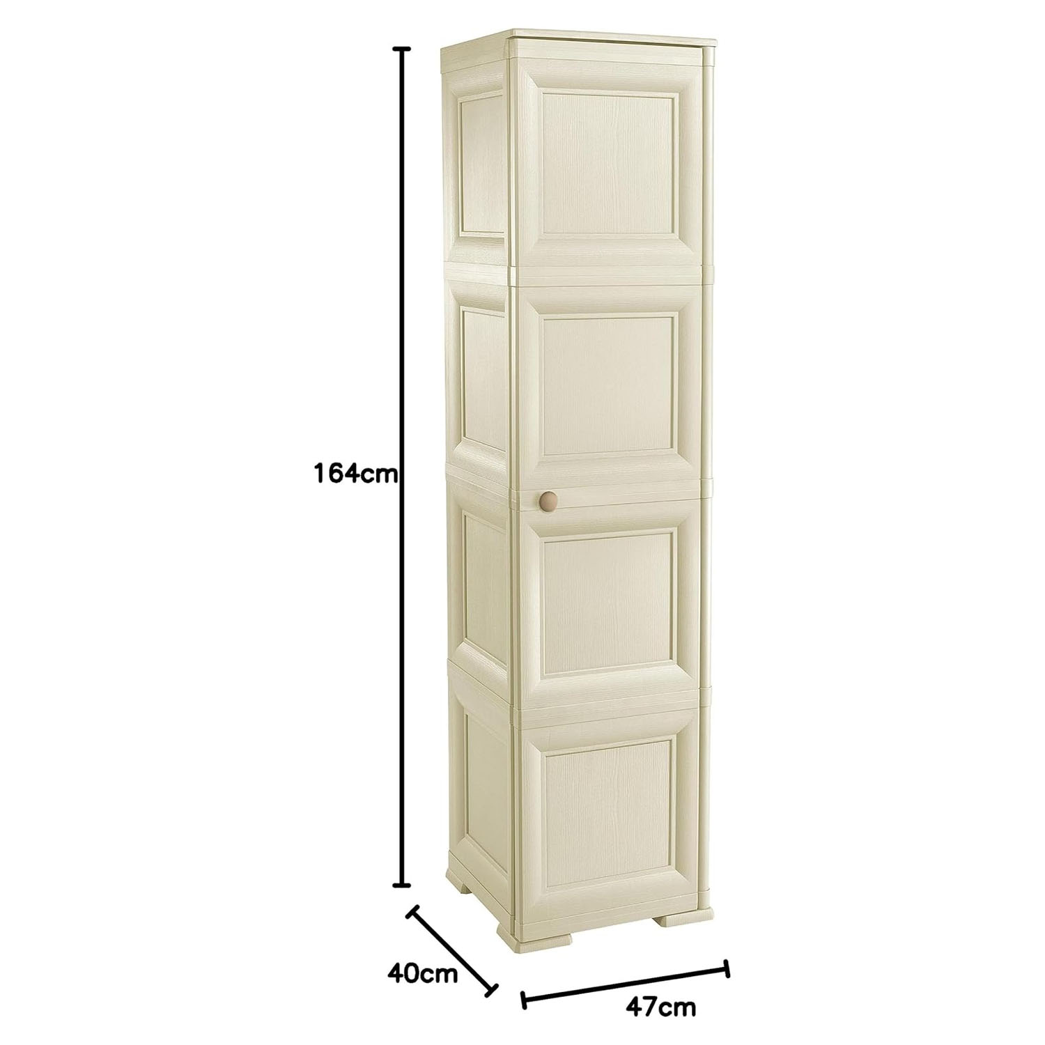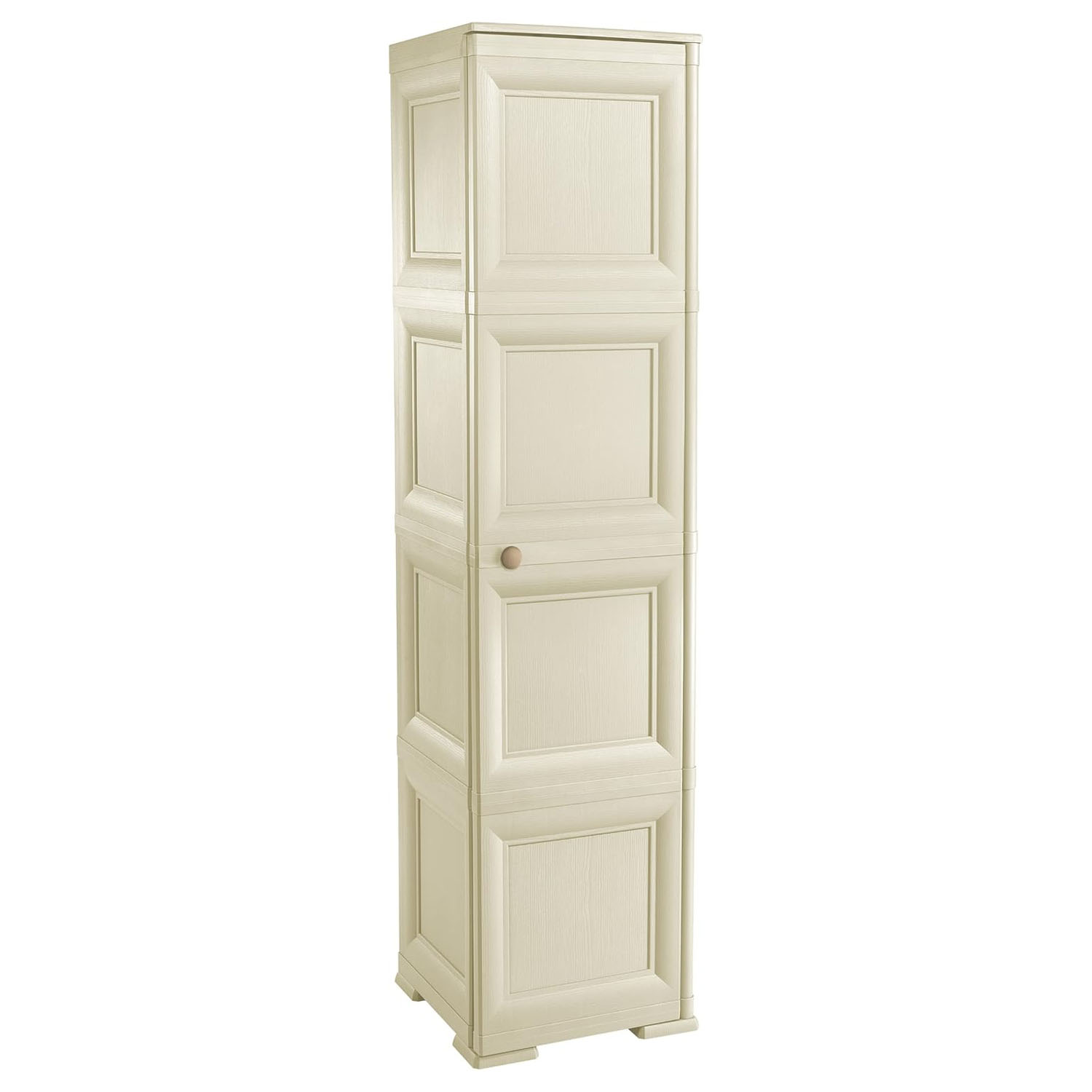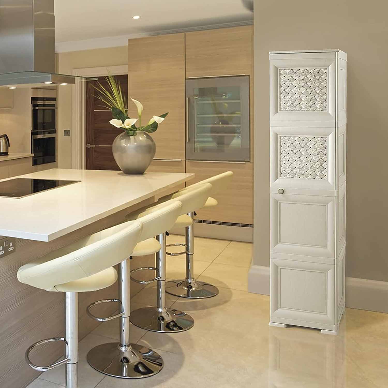 Con le sue ante lisce e il colore Angora, si integra perfettamente in ogni ambiente: dal balcone al ripostiglio, dalla lavanderia al bagno. I suoi 4 vani interni offrono spazio sufficiente per scope, detersivi, scarpe, biancheria o abiti, rendendola perfetta sia come armadio portascope, sia come guardaroba in plastica per ambienti interni.
