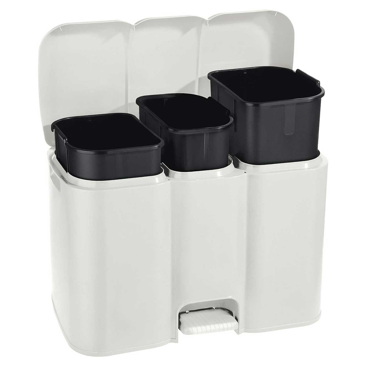I tre scomparti separati, facilmente accessibili tramite apertura a pedale, permettono una suddivisione comoda e igienica dei rifiuti: plastica, vetro, carta o organico trovano ognuno il proprio posto, riducendo il rischio di errori nella differenziata.