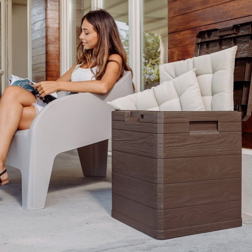 Il baule da esterni Toomax Woody’s 90L è la soluzione perfetta per chi cerca praticità, resistenza e design elegante in un unico contenitore. Realizzato in polipropilene effetto legno, unisce estetica e funzionalità per arredare giardini, balconi o terrazzi.