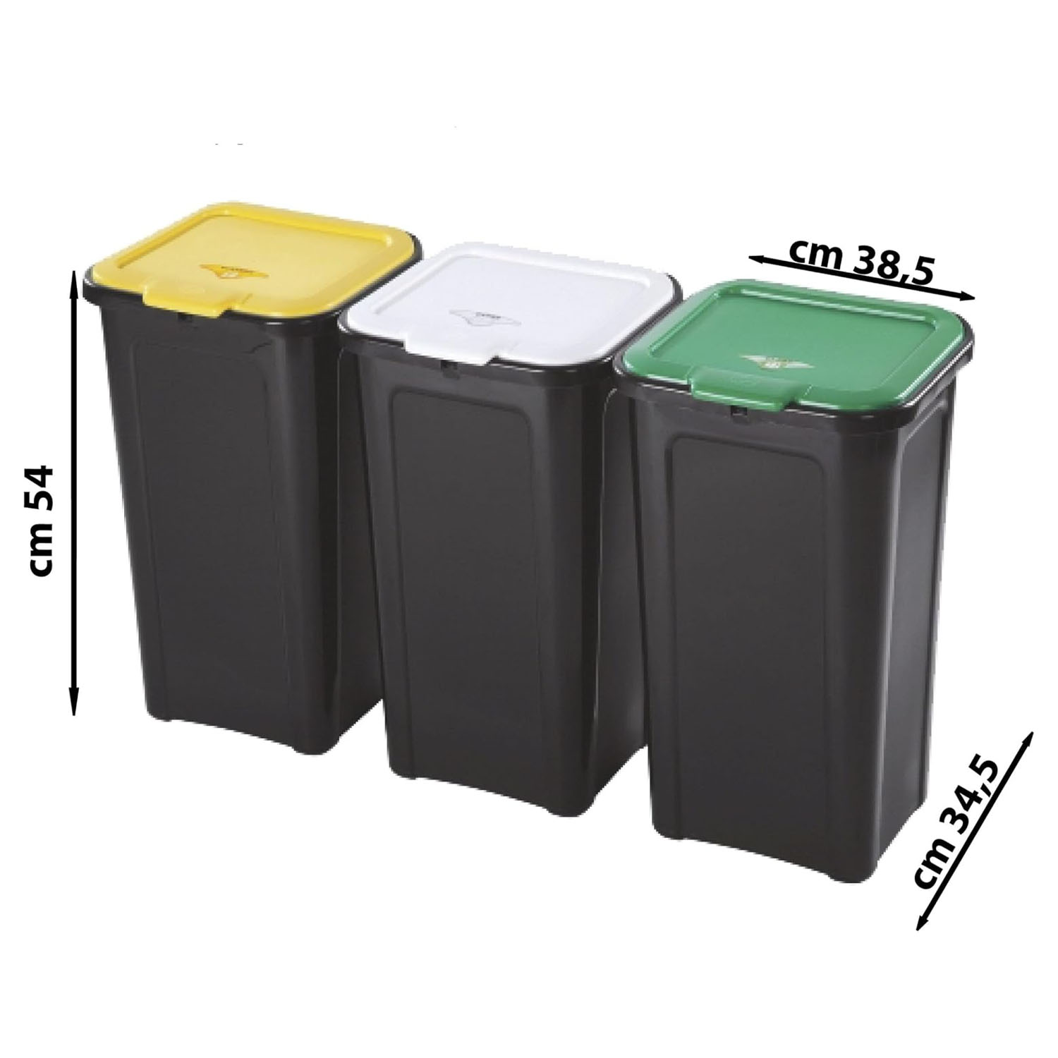 ♻️ Set da 3 pattumiere Tontarelli per raccolta differenziata, ideali per casa e ufficio