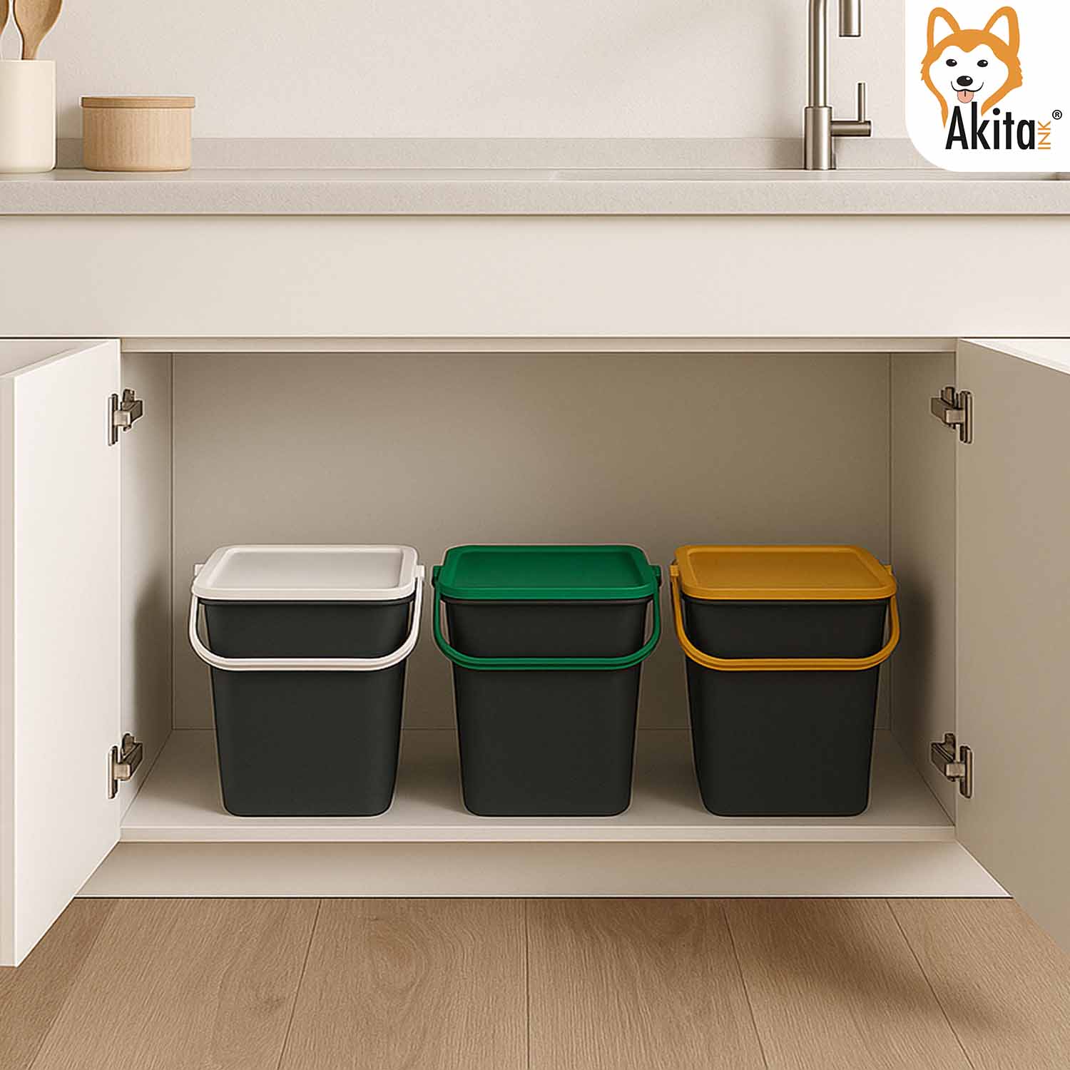 Con una capacità di 10 litri ciascuna e un ingombro ridotto, le pattumiere possono essere posizionate comodamente in fila o sovrapposte in base allo spazio disponibile, rendendo il kit ideale per gestione rifiuti in cucina, lavanderia, laboratorio o ufficio.